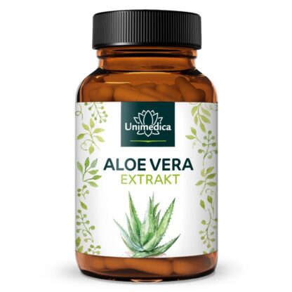 As Cápsulas de Extrato de Aloe Vera oncentram os valiosos componentes das folhas de aloe vera num extrato. Este extrato é cuidadosamente produzido, seco e moído para tornar as substâncias vegetais concentradas prontamente disponíveis na forma de cápsulas veganas práticas. Com alto teor de aloe vera, este produto oferece uma essência altamente dosada da popular planta do deserto.