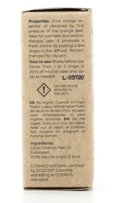 Uma das propriedades mais importantes do óleo essencial de laranja é ser um poderoso antidepressivo e relaxante. É amplamente utilizado na aromaterapia para ajudar a acalmar o stress. As propriedades anti-inflamatórias, antiespasmódicas e antissépticas diuréticas também se destacam. No campo da beleza, o óleo essencial de laranja ajuda a prevenir o envelhecimento da pele, estimulando a formação de colágeno, portanto, adicionar algumas gotas desse óleo ao seu creme antienvelhecimento ou hidratante é uma boa opção para preservar o estado natural. da sua pele.