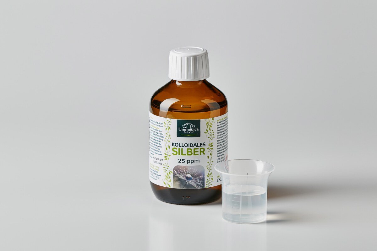 A prata coloidal da contém 25 ppm. Quanto maior o nível de ppm, mais partículas de prata estão presentes.